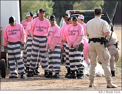 Think chain gangs are a thing of the past? Think again. Although chain gangs were phased out in 1955, Alabama reinstituted chain gangs in 1995 followed by Arizona, Florida, Iowa, and Maine. Arizona’s first female chain gang was instituted in 1996. Complete with striped uniforms, the women of a Phoenix jail (to this day) spend four to six hours a day chained together in groups of 30, clearing roadsides of weeds. But chain gangs are only the most dramatic evidence of prisoner exploitation.